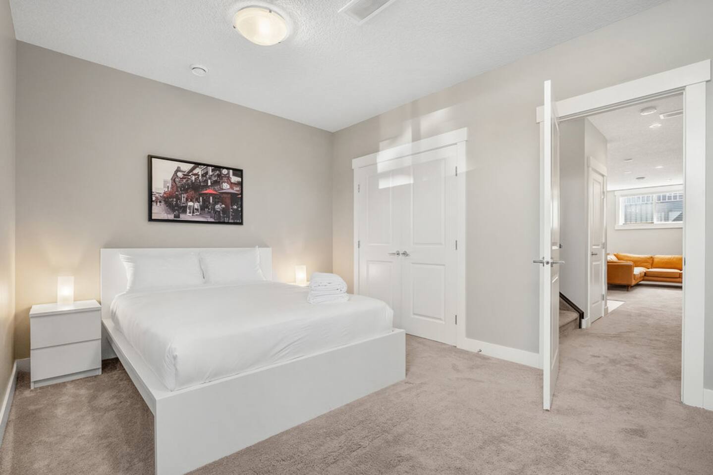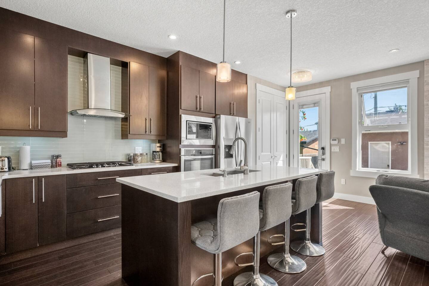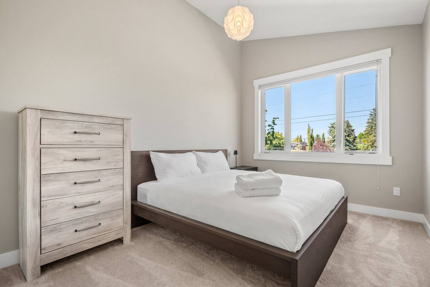 Welcome to your stylish retreat in the heart of Calgary! This spacious 4-bedroom, 3.5-bath half-duplex is perfectly located in Windsor Park, just minutes from Chinook Mall, McLeod Trail, and a short drive to downtown. Step inside to a modern, open-concept design with high-end finishes, sleek furnishings, and plenty of natural light. The fully equipped kitchen makes cooking a breeze, while the cozy living area is perfect for relaxing after a day of exploring the city. Upstairs, you’ll find 3 comfortable king bedrooms with plush bedding and ample storage, including a primary suite with a private ensuite. The home also features a lower-level recreation space, ideal for movie nights or family time. Outside, enjoy a private yard along with the convenience of a two-car garage. With easy access to Calgary’s top shopping, dining, and entertainment, this home offers the perfect blend of comfort, convenience, and style. ✨ Highlights: 4 bedrooms (3 king beds, 1 Queen), 3.5 bathrooms Modern kitchen with full amenities Stylish open-concept living space Private yard & two-car garage Close to Chinook Mall, McLeod Trail, Deerfoot, Blackfoot & downtown