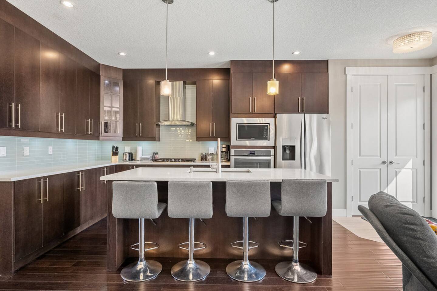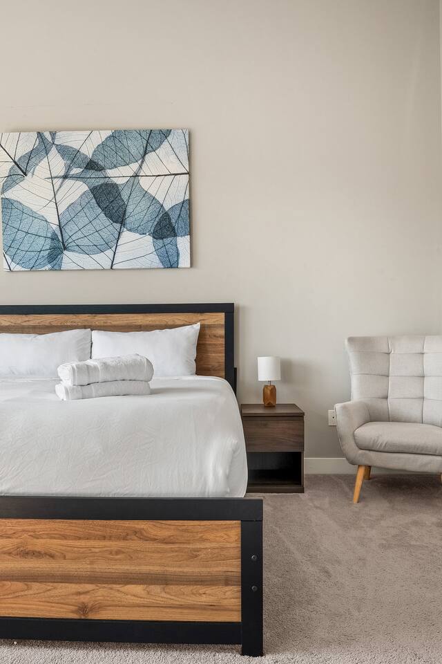 Space: Modern 4-bedroom half-duplex just 5 min from Chinook Mall. Perks: Private garage parking, high-speed Wi-Fi, full Chef's kitchen, washer/dryer, relaxing backyard with BBQ grill, and a soaking bathtub for unwinding. Perfect for families or business travelers who want quick access to shopping, transit and downtown.