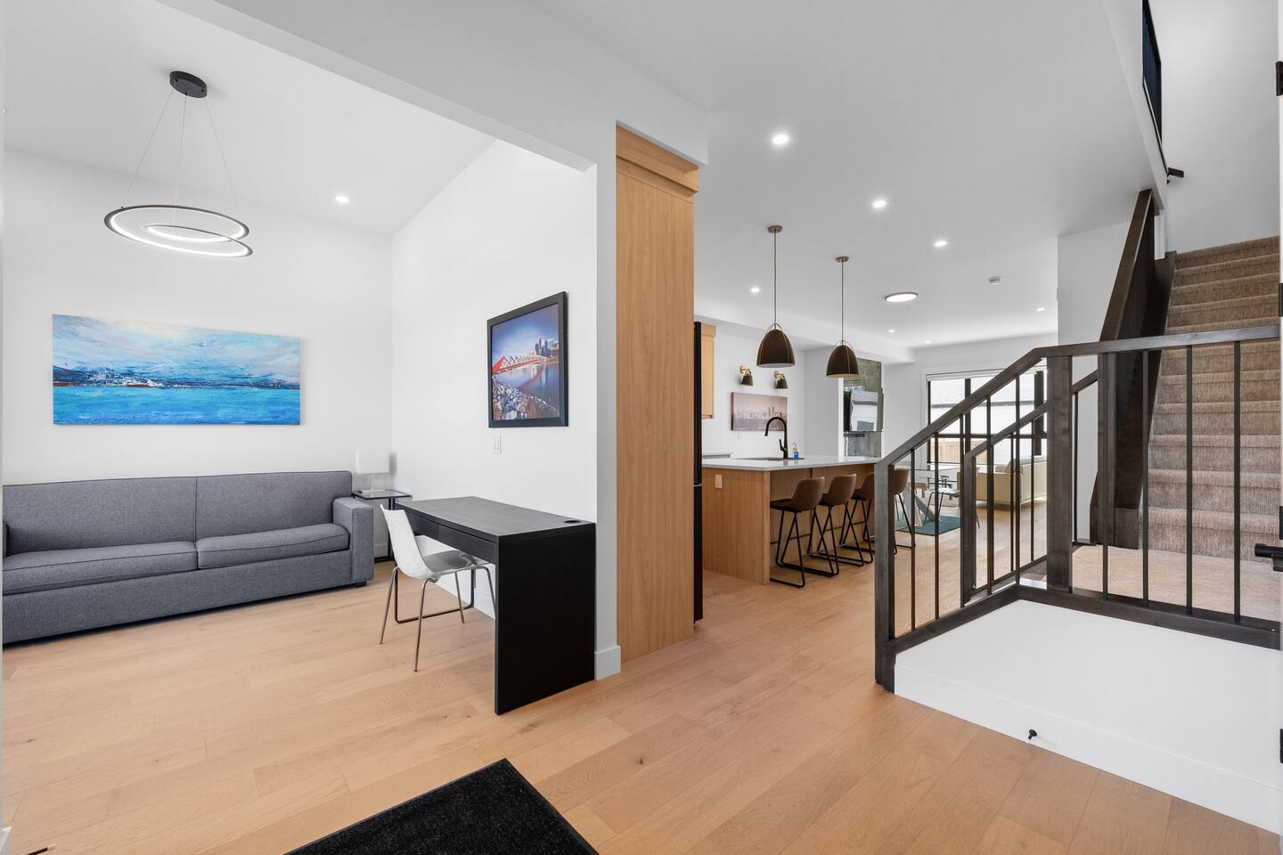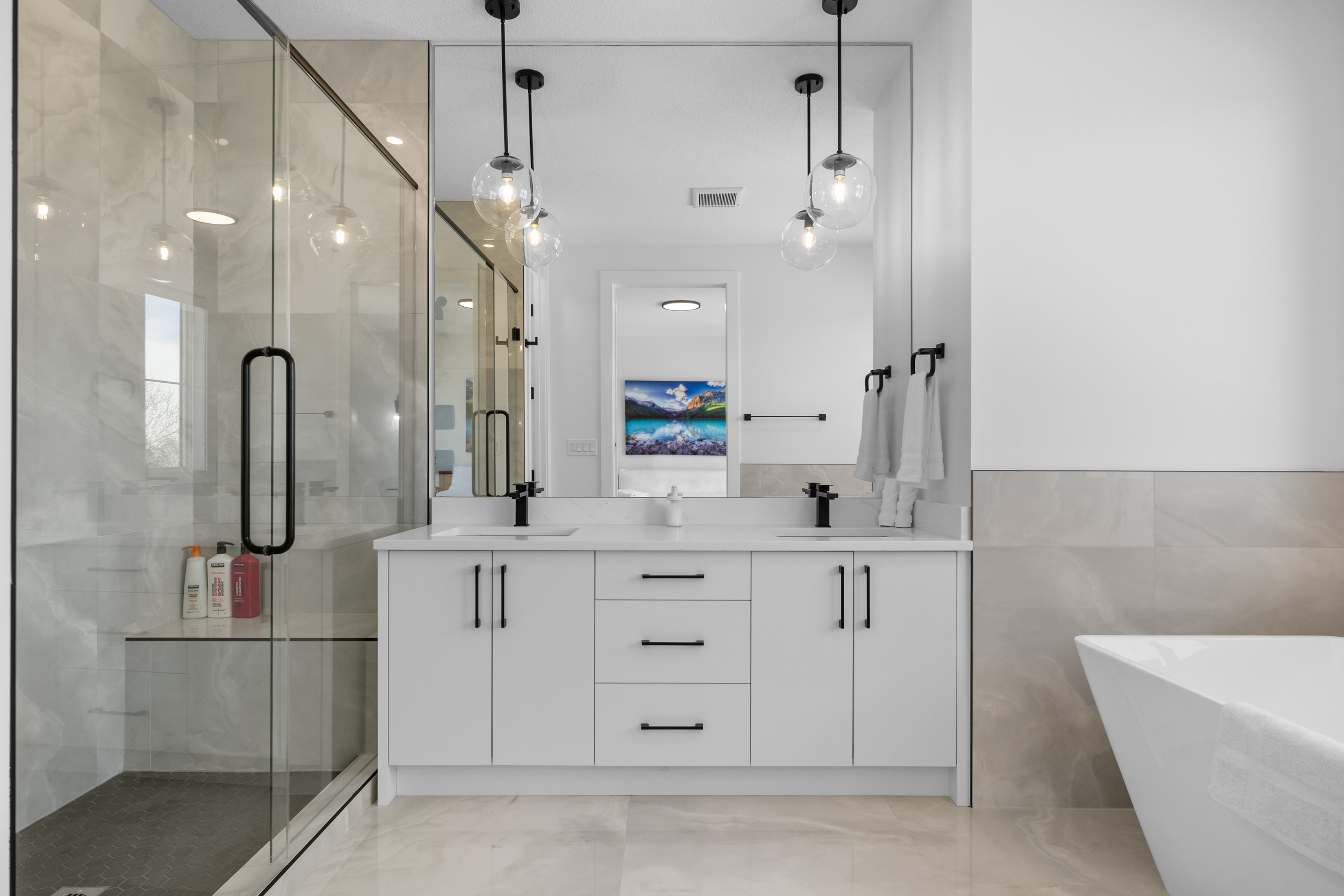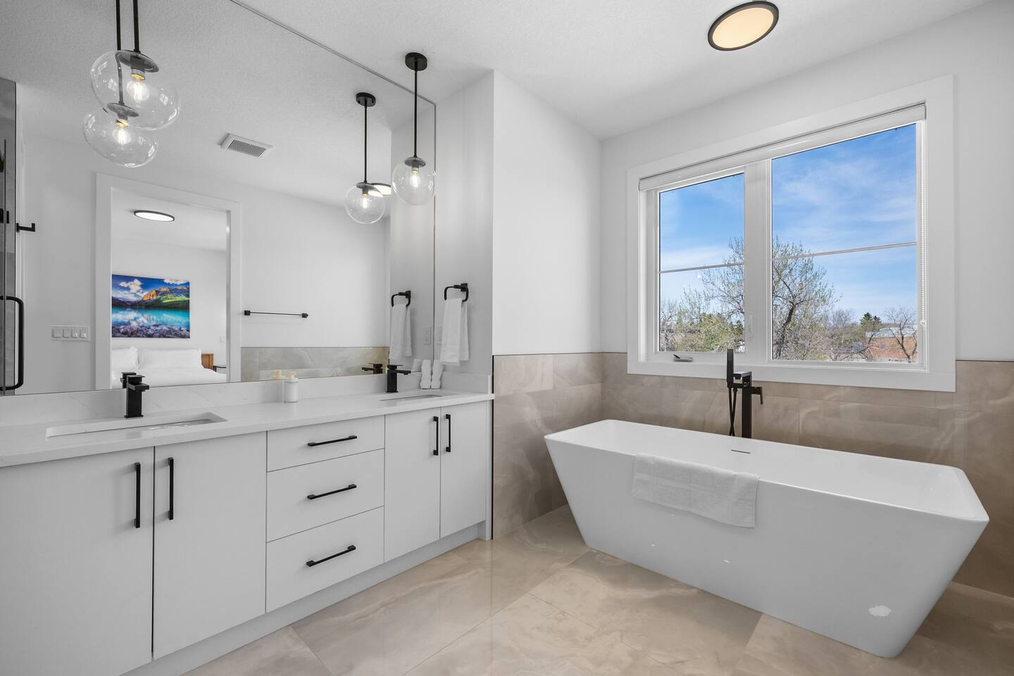Stay in our brand-new, modern 3-bedroom, 2.5-bathroom home designed with comfort and function in mind—perfect for families, professionals, or extended stays in Calgary. ✨ Highlights of this stunning home include: 🛏️ A spacious primary suite with a spa-like ensuite—featuring a luxurious shower, deep soaker tub, and double vanity for a relaxing, hotel-like experience 🍳 A chef’s kitchen with premium appliances, ample counter space, and everything you need to cook, serve, and entertain in style 🔥 A cozy fireplace in the living room to gather and unwind 🍽️ A formal dining room for meals, celebrations, or even working from home 🛋️ A bright front bonus room and an upstairs bonus room—great for kids, a workspace, or quiet lounging 🧼 2.5 modern bathrooms stocked with fresh towels and essentials 🧺 Full in-suite laundry, fast Wi-Fi, and plenty of space to spread out This thoughtfully designed home is in a quiet, family-friendly neighborhood, offering the perfect balance of style, space, and comfort.