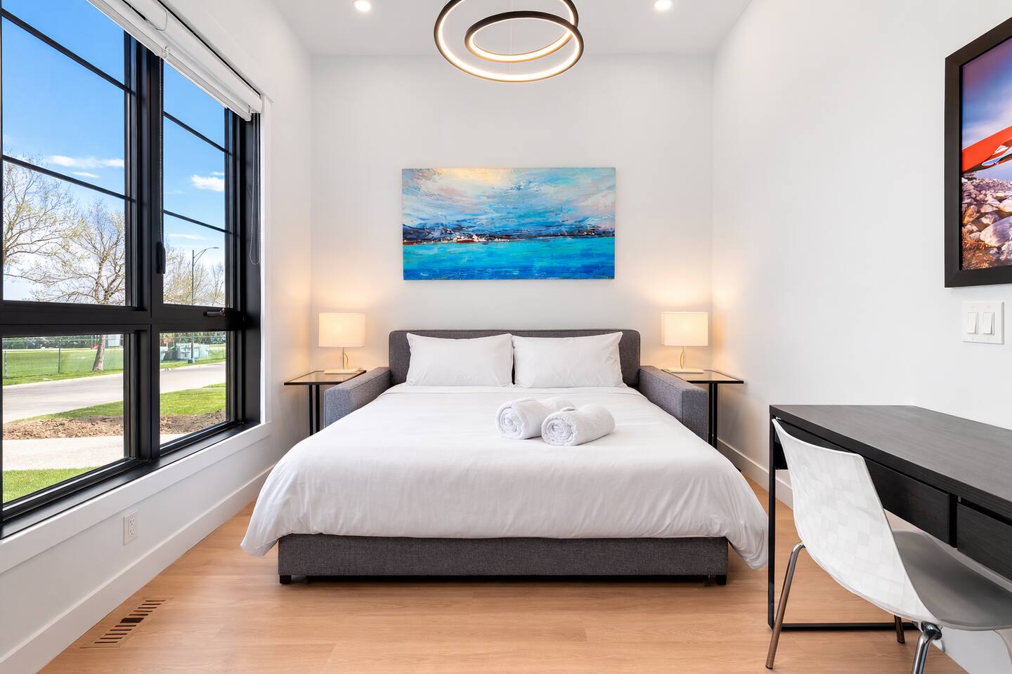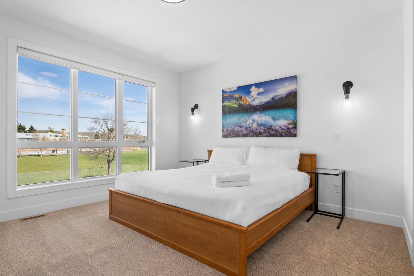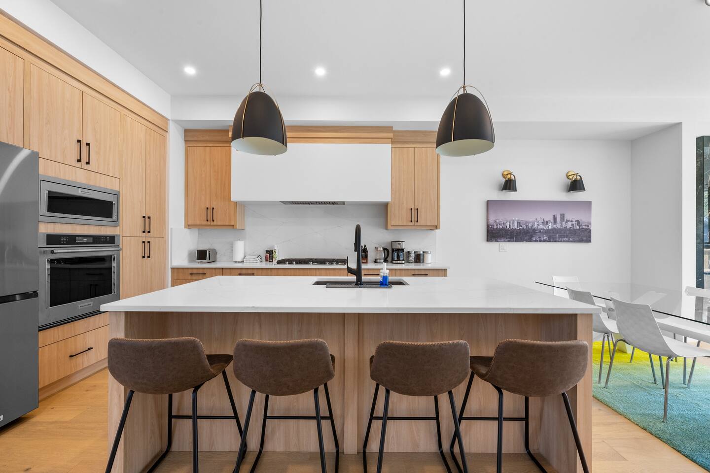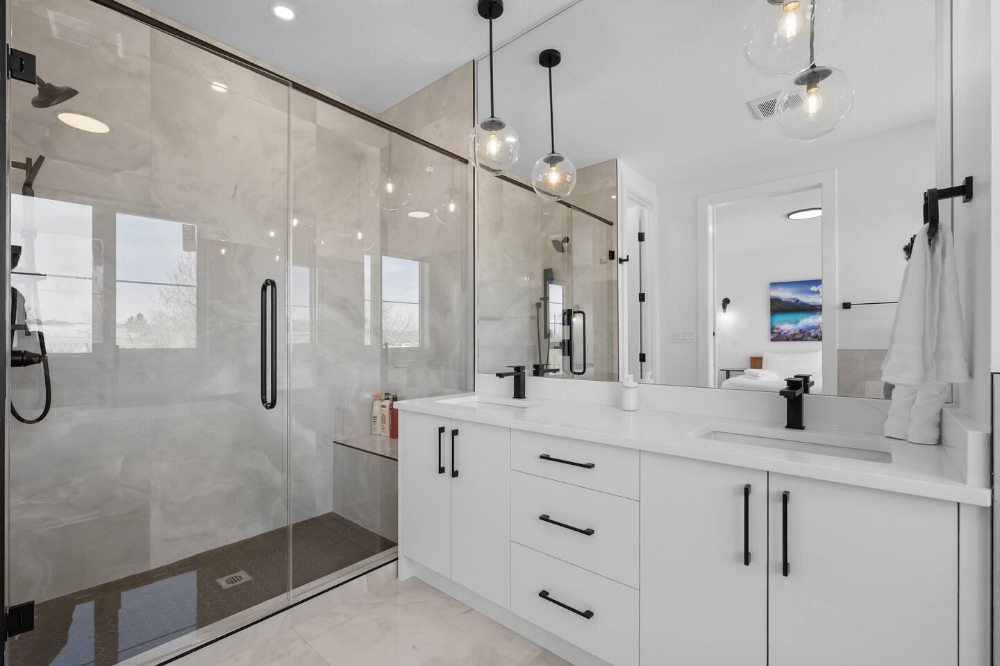 Stay in our brand-new, modern 3-bedroom, 2.5-bathroom home designed with comfort and function in mind—perfect for families, professionals, or extended stays in Calgary. ✨ Highlights of this stunning home include: 🛏️ A spacious primary suite with a spa-like ensuite—featuring a luxurious shower, deep soaker tub, and double vanity for a relaxing, hotel-like experience 🍳 A chef’s kitchen with premium appliances, ample counter space, and everything you need to cook, serve, and entertain in style 🔥 A cozy fireplace in the living room to gather and unwind 🍽️ A formal dining room for meals, celebrations, or even working from home 🛋️ A bright front bonus room and an upstairs bonus room—great for kids, a workspace, or quiet lounging 🧼 2.5 modern bathrooms stocked with fresh towels and essentials 🧺 Full in-suite laundry, fast Wi-Fi, and plenty of space to spread out This thoughtfully designed home is in a quiet, family-friendly neighborhood, offering the perfect balance of style, space, and comfort.