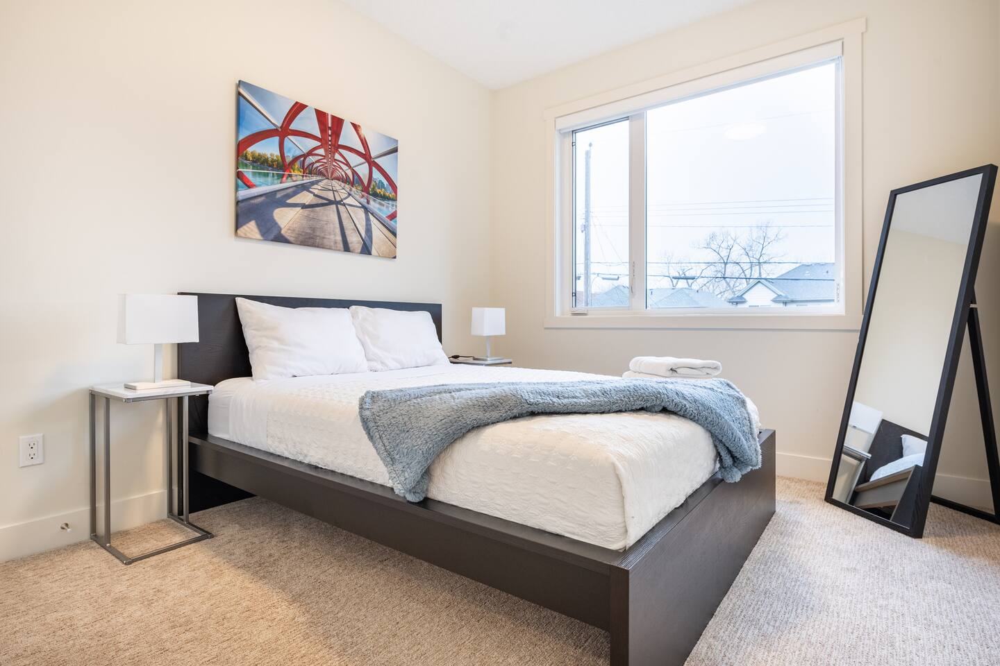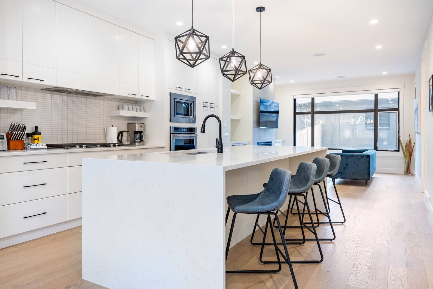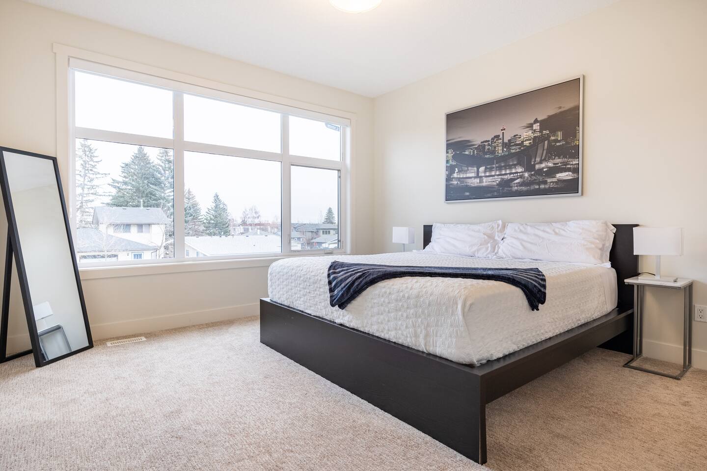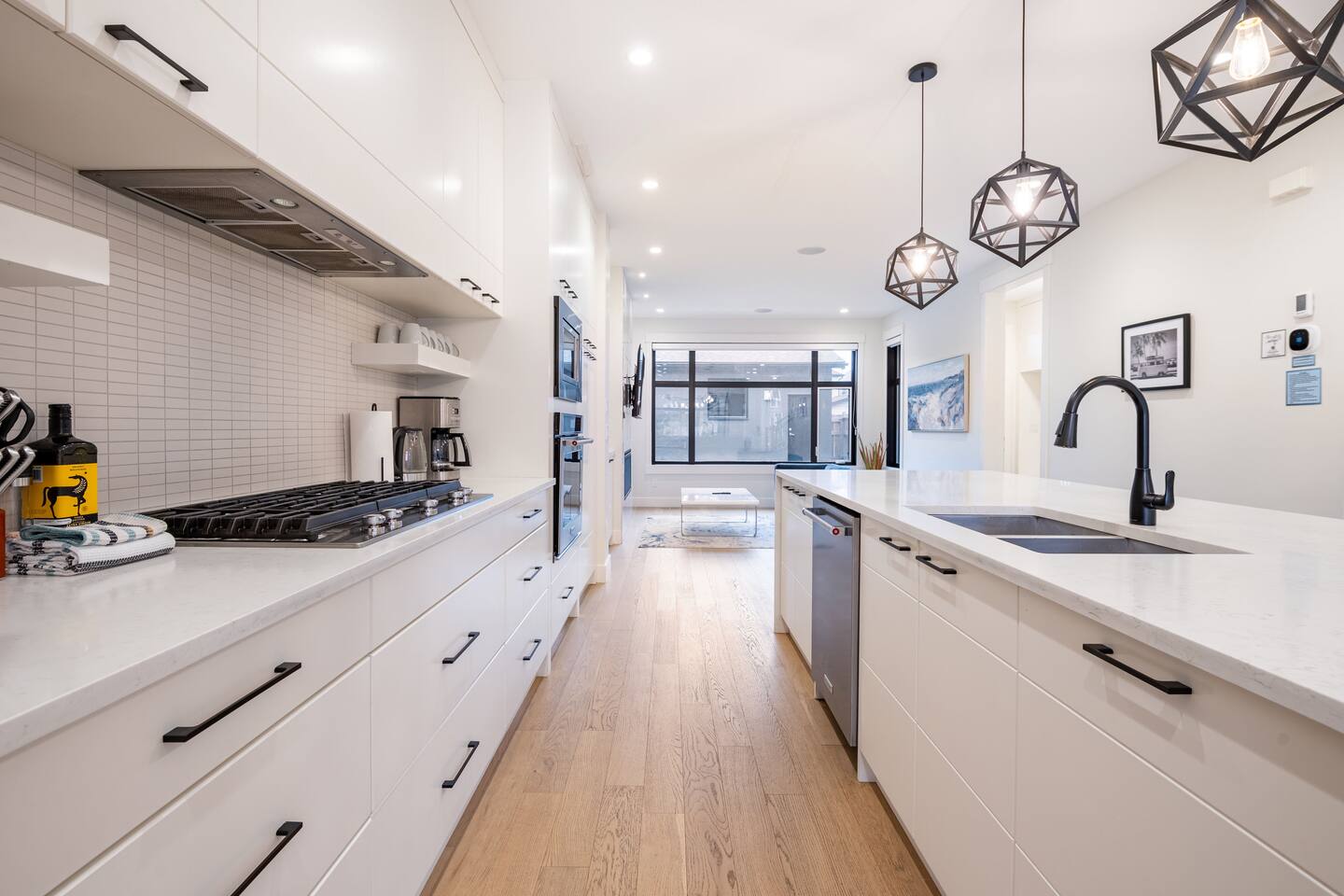 Features Incuding: - King size beds in the master bedroom and queen beds in the other 3 bedrooms. There is an additional queen bed that can be set up in the basement living room. - 2 Car garage. - Backyard. - Designated work space. - Fast 1 Gig Wifi speed. - Dining table that seats 8 people! - Two large Smart TV's on 2 different levels. - Large soaker tub in the master bedroom ensuite bathroom. - Finished basement with a big screen TV, wetbar, 4 piece bathroom and bedroom with a queen bed. - Large closets in all bedrooms. - 3 Full bathrooms and 1 half bath. - Professional appliances including a 5 burner gas stove. - Coffee station with coffee, creamer, sugar & tea. - All bathrooms are fully stocked with shampoo, conditioner, shower gel, hand soap and hair dryers. - Laundry room with washer & dryer, iron and ironing board