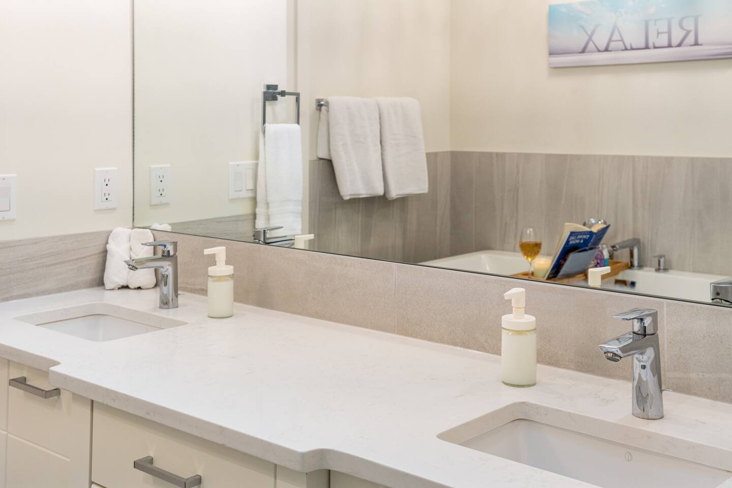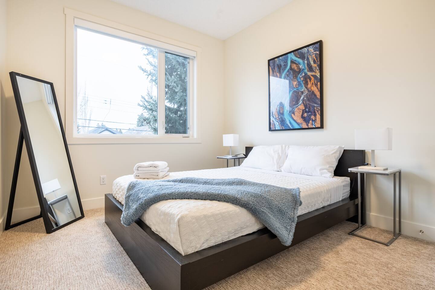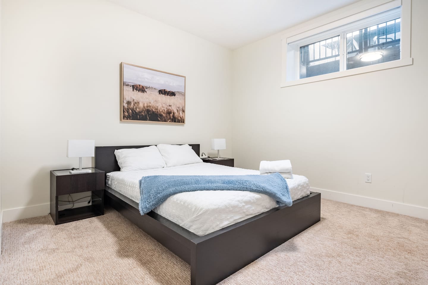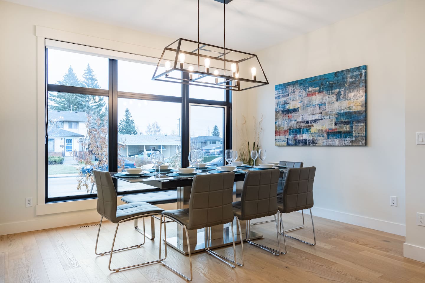 Features Incuding: - King size beds in the master bedroom and queen beds in the other 3 bedrooms. There is an additional queen bed that can be set up in the basement living room. - 2 Car garage. - Backyard. - Designated work space. - Fast 1 Gig Wifi speed. - Dining table that seats 8 people! - Two large Smart TV's on 2 different levels. - Large soaker tub in the master bedroom ensuite bathroom. - Finished basement with a big screen TV, wetbar, 4 piece bathroom and bedroom with a queen bed. - Large closets in all bedrooms. - 3 Full bathrooms and 1 half bath. - Professional appliances including a 5 burner gas stove. - Coffee station with coffee, creamer, sugar & tea. - All bathrooms are fully stocked with shampoo, conditioner, shower gel, hand soap and hair dryers. - Laundry room with washer & dryer, iron and ironing board