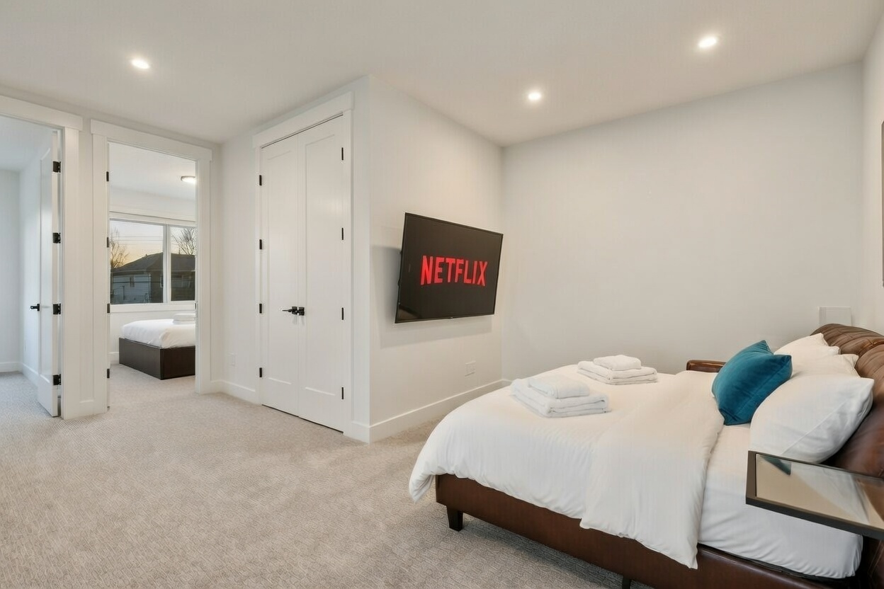 Brand-new, modern 3-bed retreat minutes from the University, McMahon Stadium and Alberta Children’s & Foothills Hospitals. Gather around the cozy indoor fireplace, cook in the chef’s kitchen and stream on fast Wi-Fi. Upstairs, unwind in a spa-style ensuite; outside, sip coffee in the sunny backyard before hopping on the 8-minute C-Train to downtown. Perfect for families, professionals or weekend explorers seeking space, style and unbeatable location.