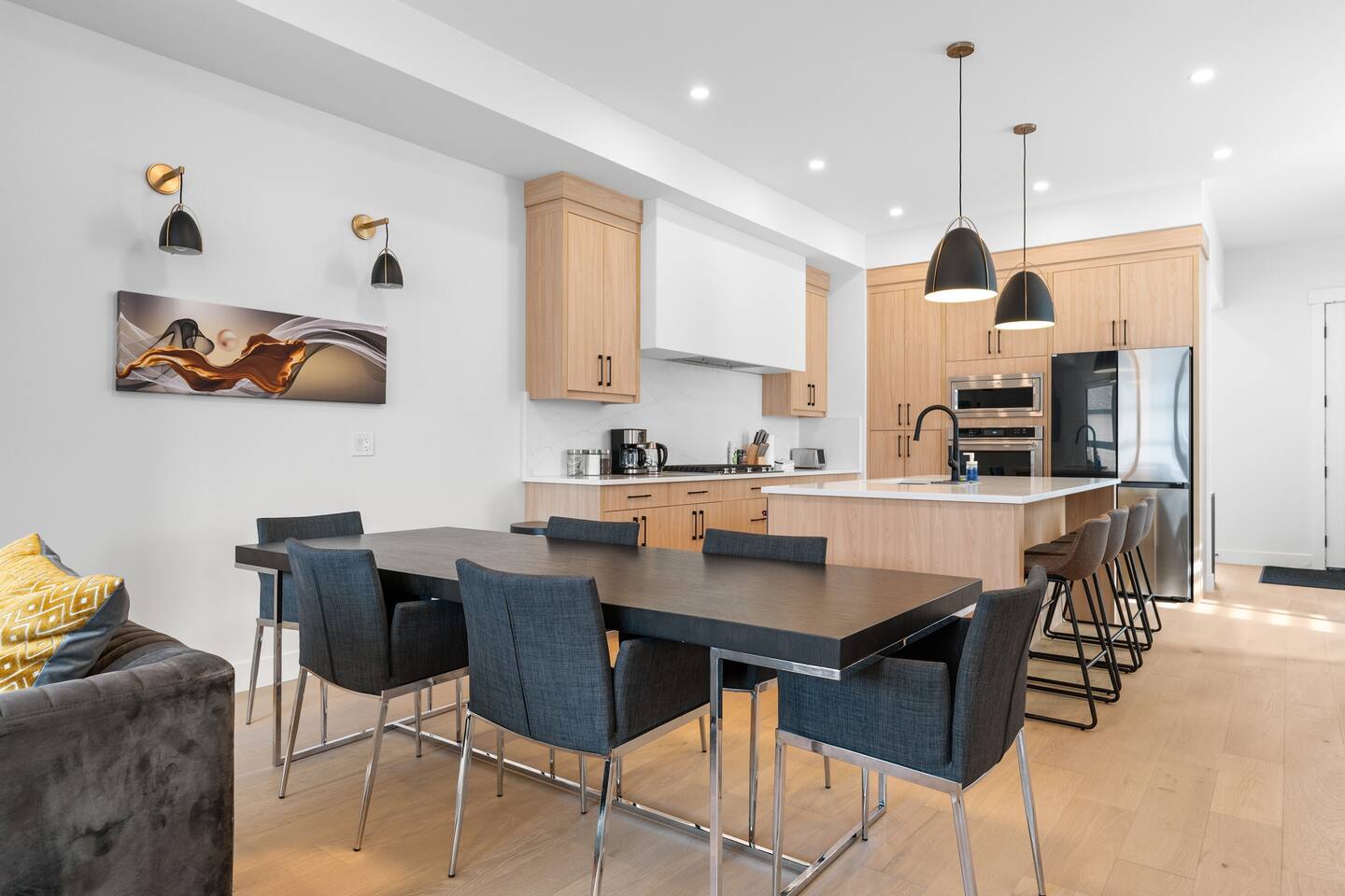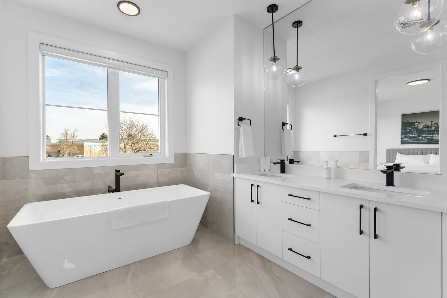 Stay in our brand-new, modern 3-bedroom, 2.5-bathroom home designed with comfort and function in mind—perfect for families, professionals, or extended stays in Calgary. ✨ Highlights of this stunning home include: 🛏️ A spacious primary suite with a spa-like ensuite—featuring a luxurious shower, deep soaker tub, and double vanity for a relaxing, hotel-like experience 🍳 A chef’s kitchen with premium appliances, ample counter space, and everything you need to cook, serve, and entertain in style 🔥 A cozy fireplace in the living room to gather and unwind 🍽️ A formal dining room for meals, celebrations, or even working from home 🛋️ A bright front bonus room and an upstairs bonus room—great for kids, a workspace, or quiet lounging 🧼 2.5 modern bathrooms stocked with fresh towels and essentials 🧺 Full in-suite laundry, fast Wi-Fi, and plenty of space to spread out This thoughtfully designed home is in a quiet, family-friendly neighborhood, offering the perfect balance of style, space, and comfort.